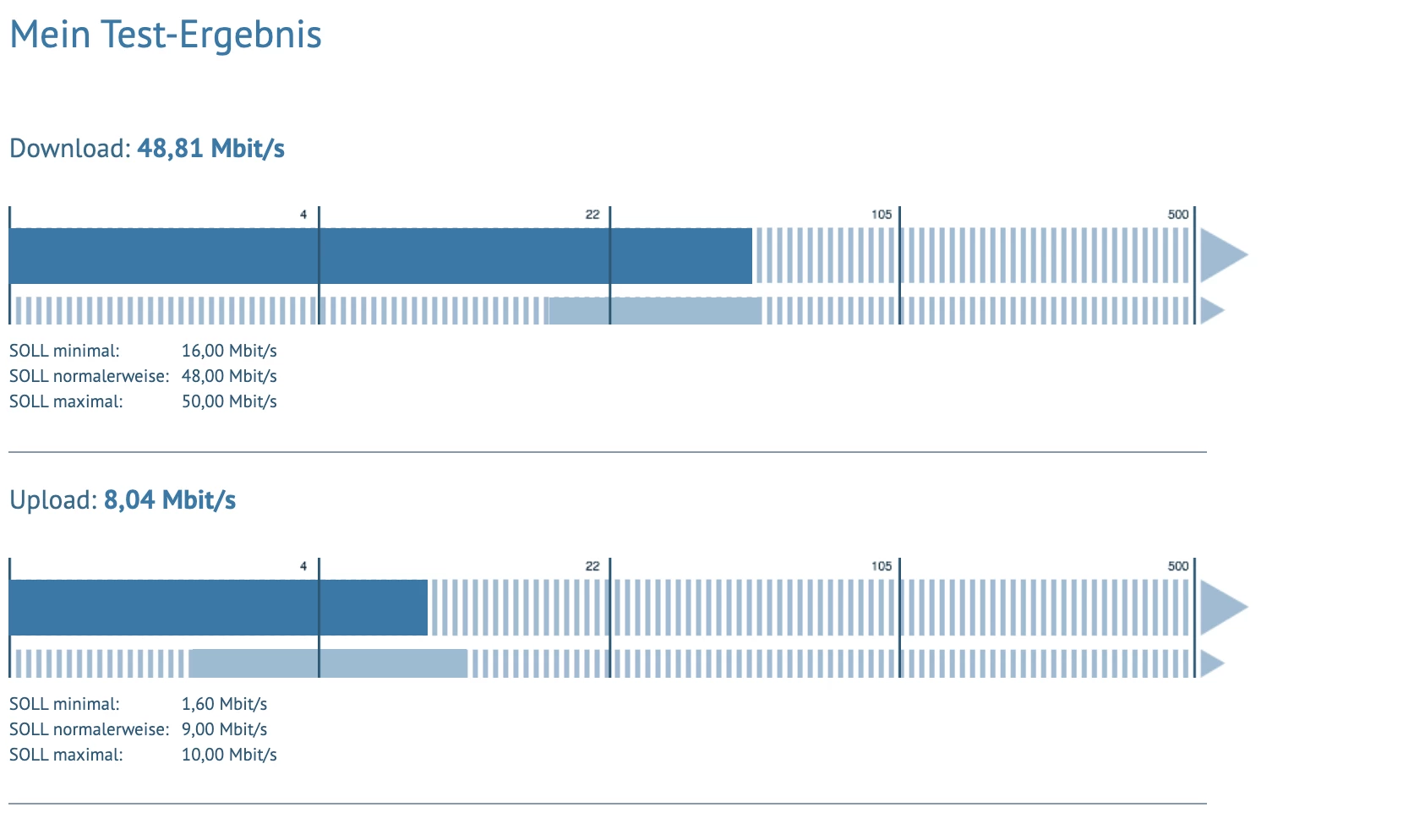 laut unseren Systemen müssten die 50 Mbit/s bei dir ankommen. Kannst du mal einen Speedtest machen, z.B. auf breitbandmessung.de und uns das Ergebnis hier posten?