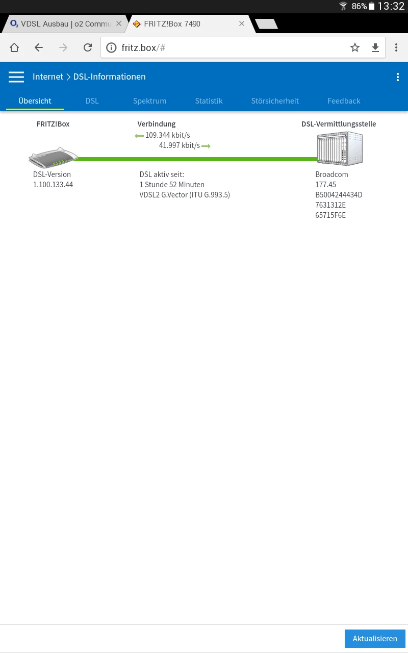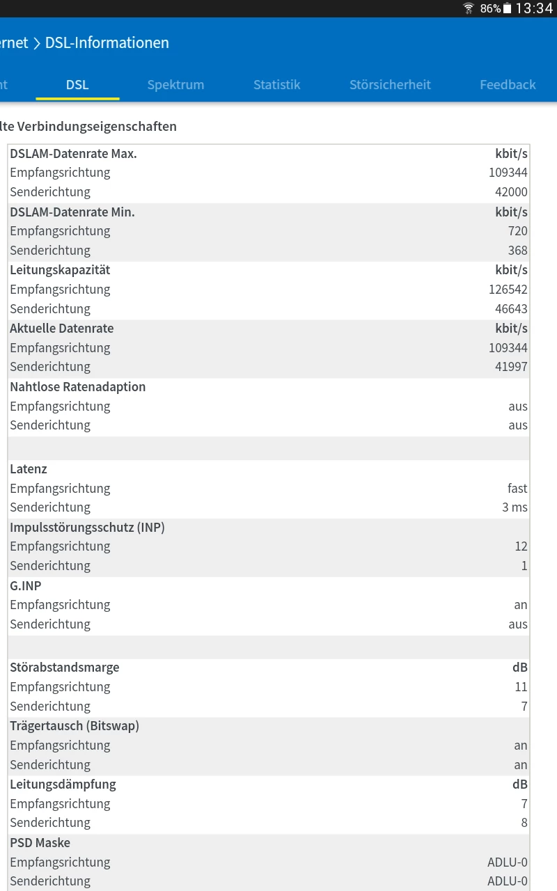 Nächster Reiter, bei DSL stehen die Werte