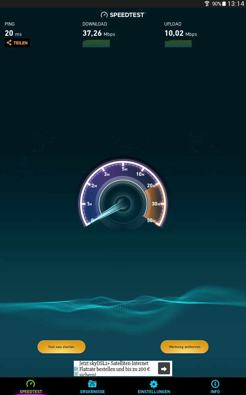 Umstellung ist erfolgt, 15 PING, 48,9 DL, 9,7 UL