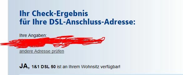Hast du nur bei 1&1 den Verfügbarkeitscheck gemacht?Ich würde vorsichtshalber noch bei der Telekom und Vodafone schauen.
