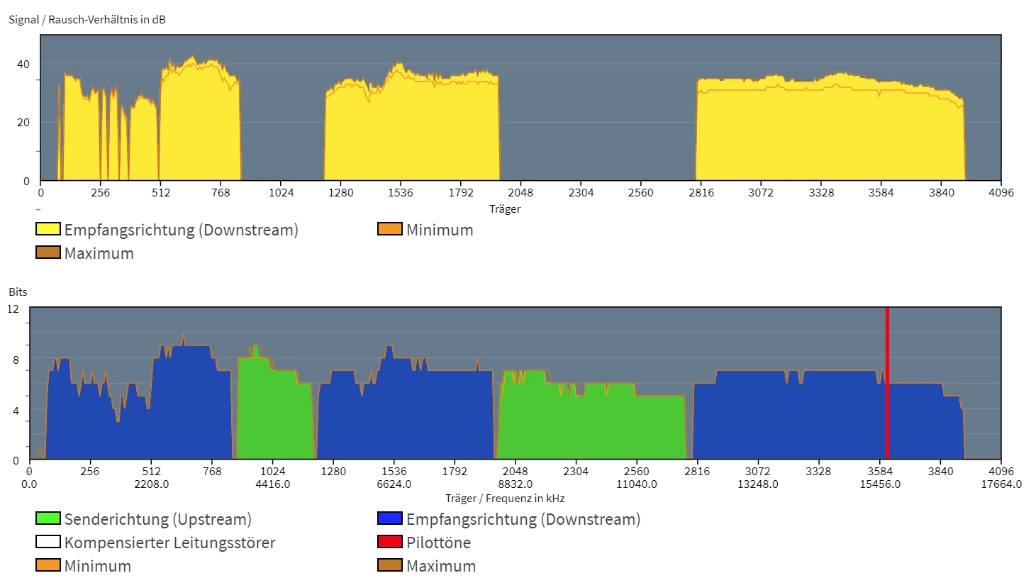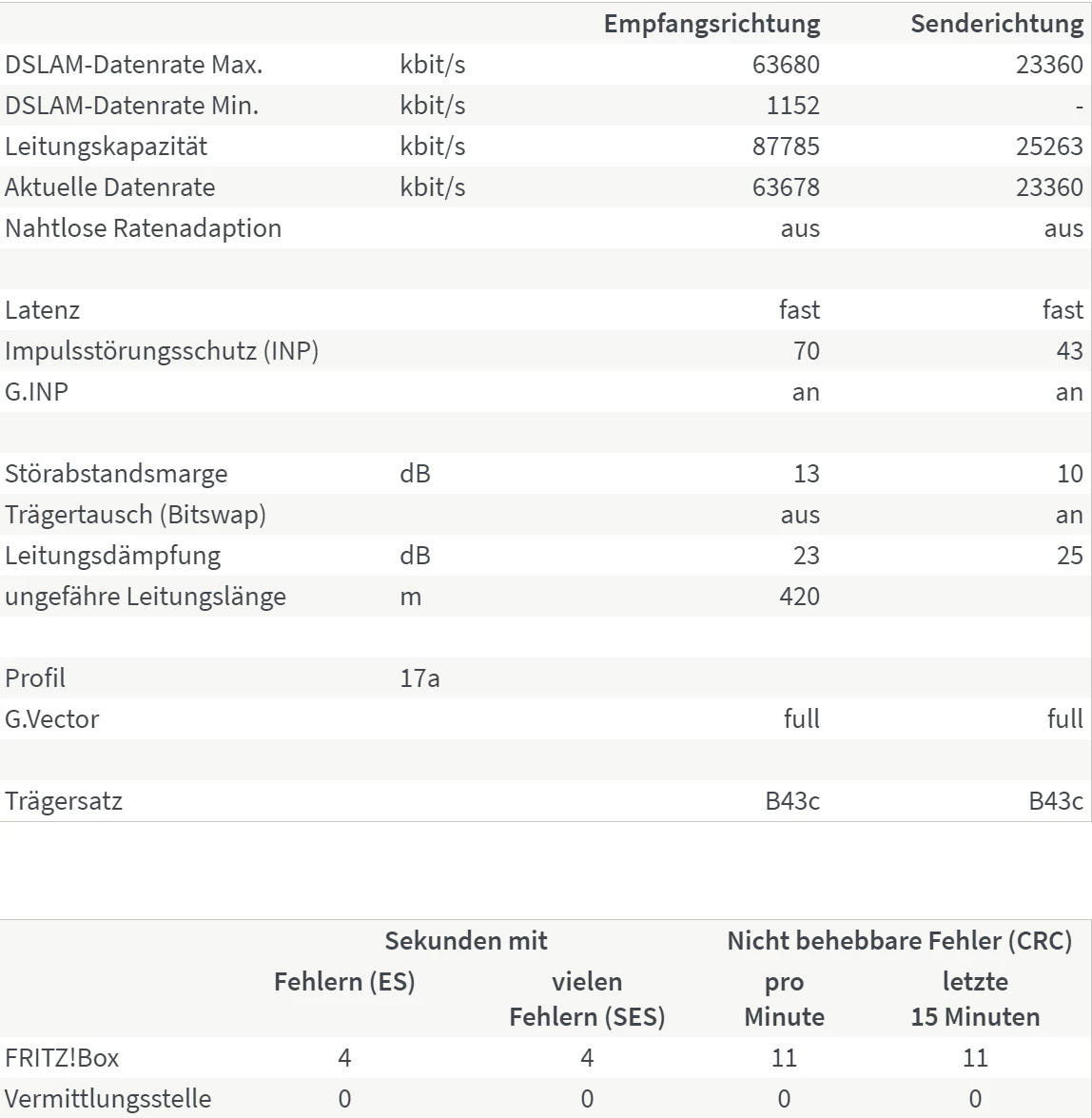 @simplix Dsl Anschluss muss stabil mit einer aktuellen Fritzbox und Störsicherheit „maximale Performance“ laufen, es sei denn die Hausverkabelung ist von Anno da zu mal. Könntest bitte mal auf maximale Performance gehen und wenn Du einen Sync bekommst mal Screenshots von Internet/DSL Informationen/DSL und Spektrum einstellen? Ich hoffe mal ganz stark Du nur eine TAE Dose in deiner Wohnung in Betrieb hast?