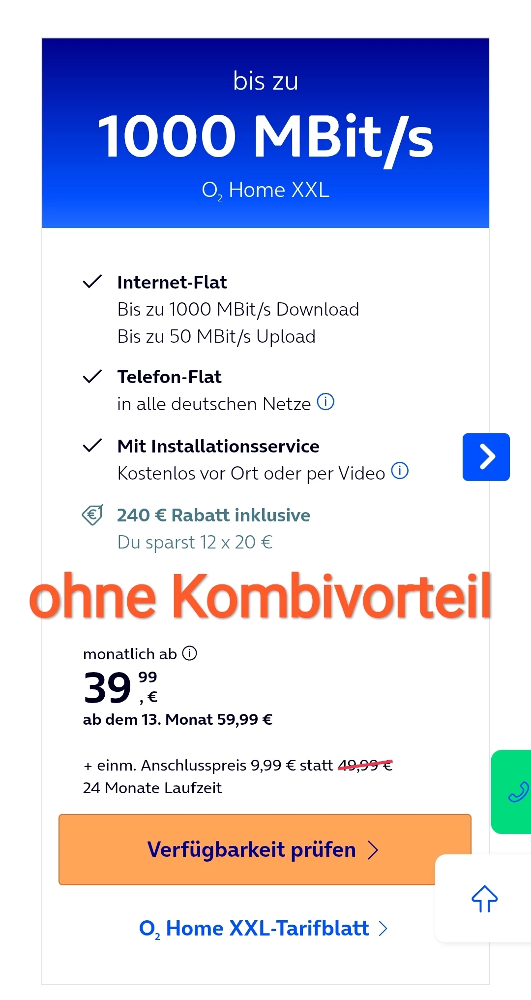 Wenn du einen o2 Mobilfunkvertrag als Erstvertrag hast, kannst du im Rahmen einer Vertragsverlängerung 10€ Kombivorteil erhalten. Also 59,99 -10€ = 49,99€