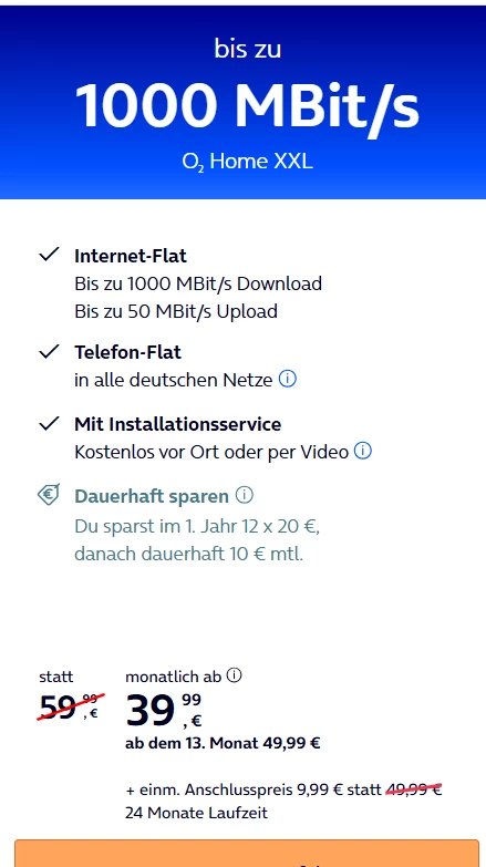 o2 Home XXL 1000 (2024), inkl. Mietrouter,