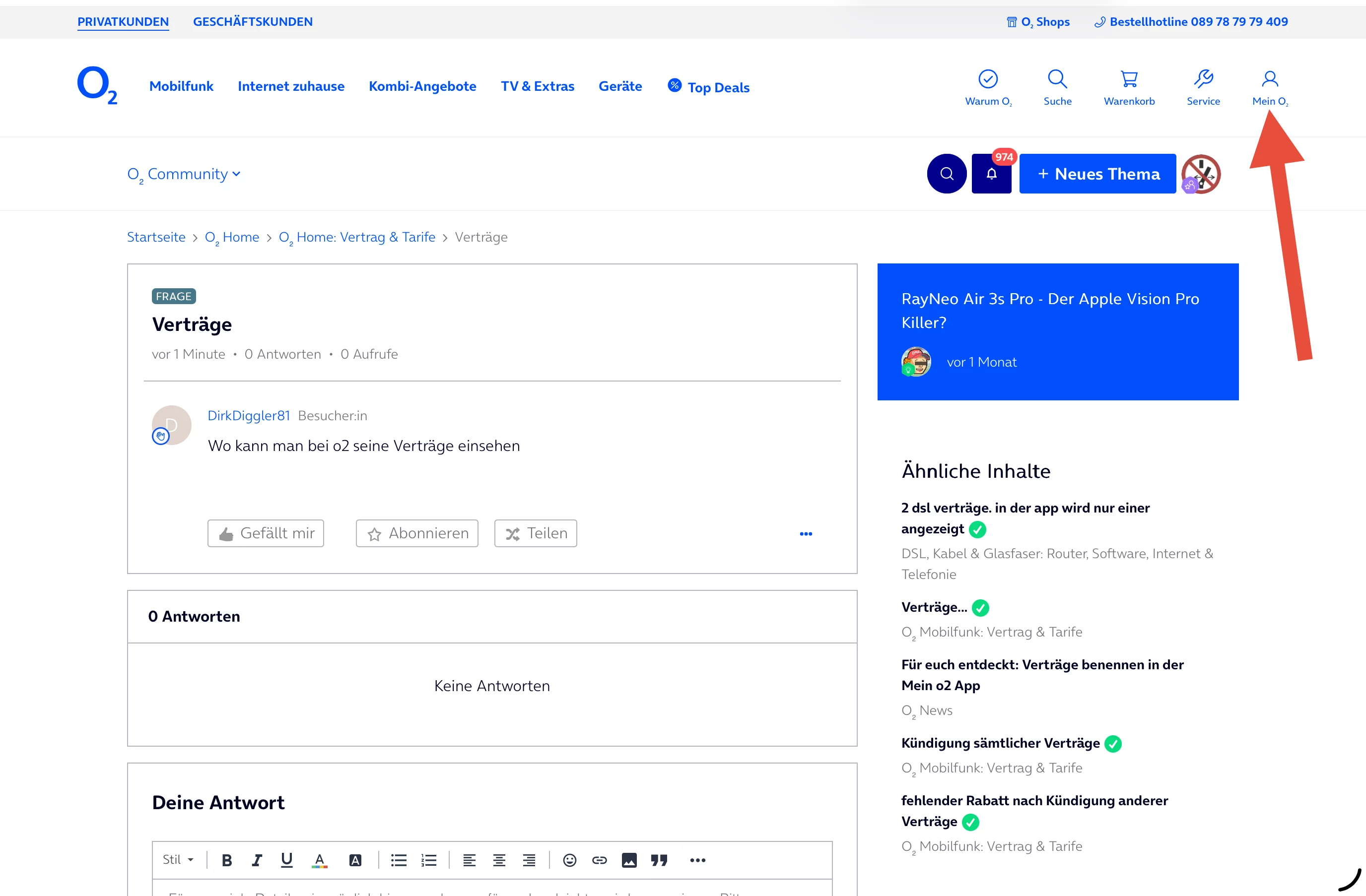 oben rechts auf Mein O2 klicken und mit der Rufnummer anmelden.