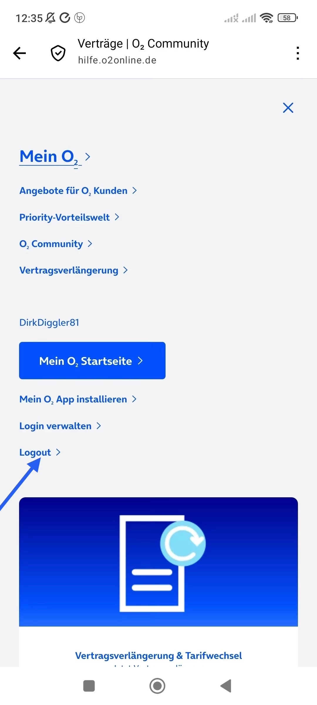 dort auf Logout klicken und anschließend mit der Rufnummer als Nutzername neu anmelden oder einmalig registrieren.