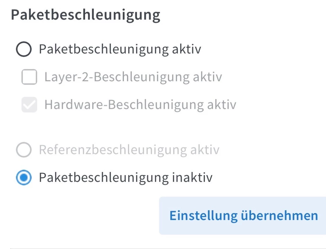 UI Fritzbox- ||| auswählen- Hilfe/ Info -ganz nach unten scrollen bis Fritzbox Support-auswählen und mach unten scrollen  bis Hardware Beschleunigung ​@Shinlao
