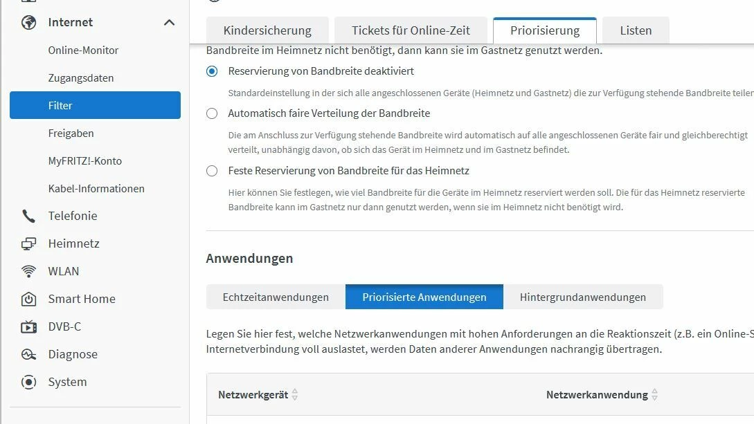 Danke. Das sieht schon besser aus mit 312mBit Download. Die Hardwarebeschleunigung finde ich nicht. Die sollte unter Fritz Hilfe/Support sein. Aber ich habe meine Geräte unter Internet-->Filter → Priorisierung hinzugefügt. Damit komme ich auf 651mBit. Danke dir. Super Tipp. Thema kann zu gemachtt werden! Gute Nacht euch allen.