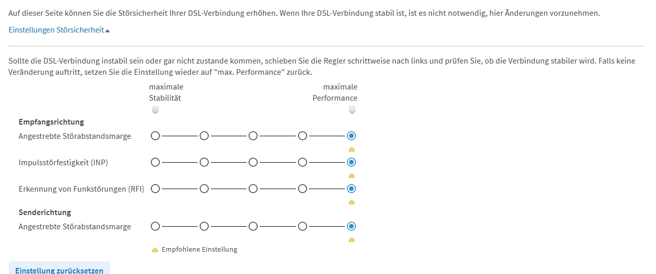 @The_Voice_70 Nachtrag: Die Störsicherheitsparameter sind derzeit alle auf Mittelwerte zwischen Stabilität und Performance eingestellt. Ich weiß nicht, ob dies Einfluss auf die max. Leitungskapazität hat.