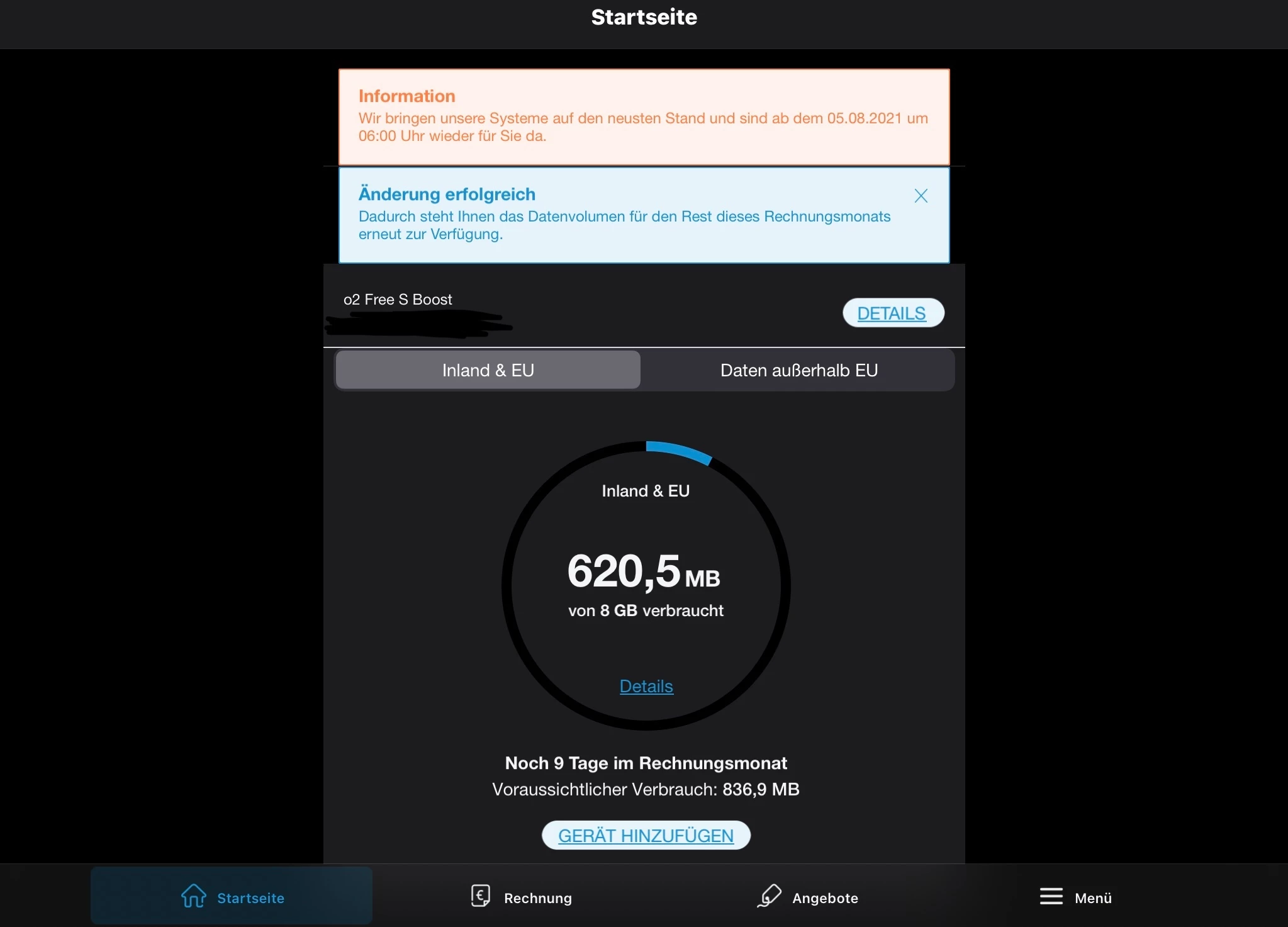 Das wäre mal eine Information gewesen, die auf den “Mein O2”-Seiten weitergeholfen hätte. Jetzt sieht alles wieder soweit normal aus und auch die Beschreibung des Tarifs lautet wieder: