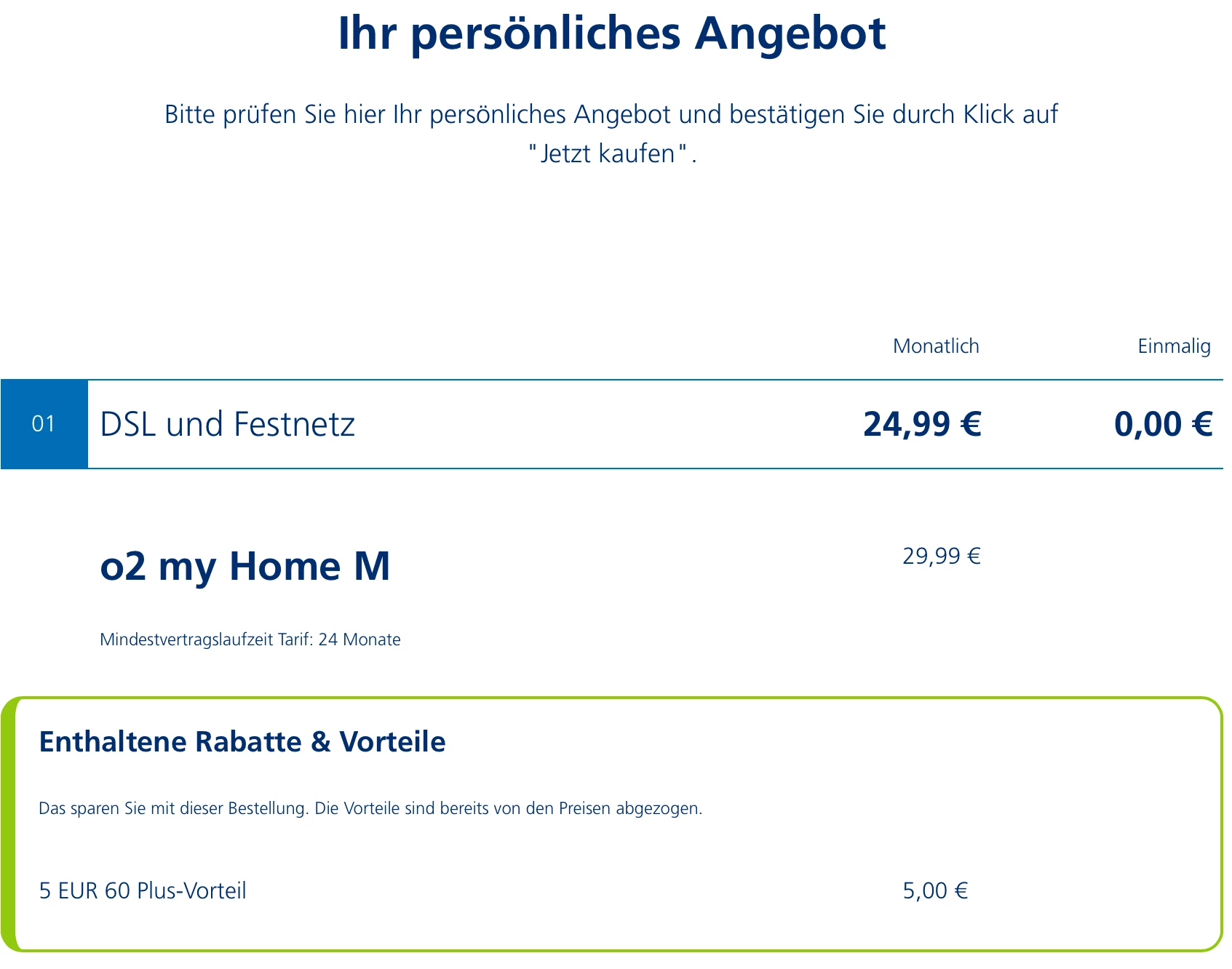 Monatliche Kosten o2 my Home M 29,99 €