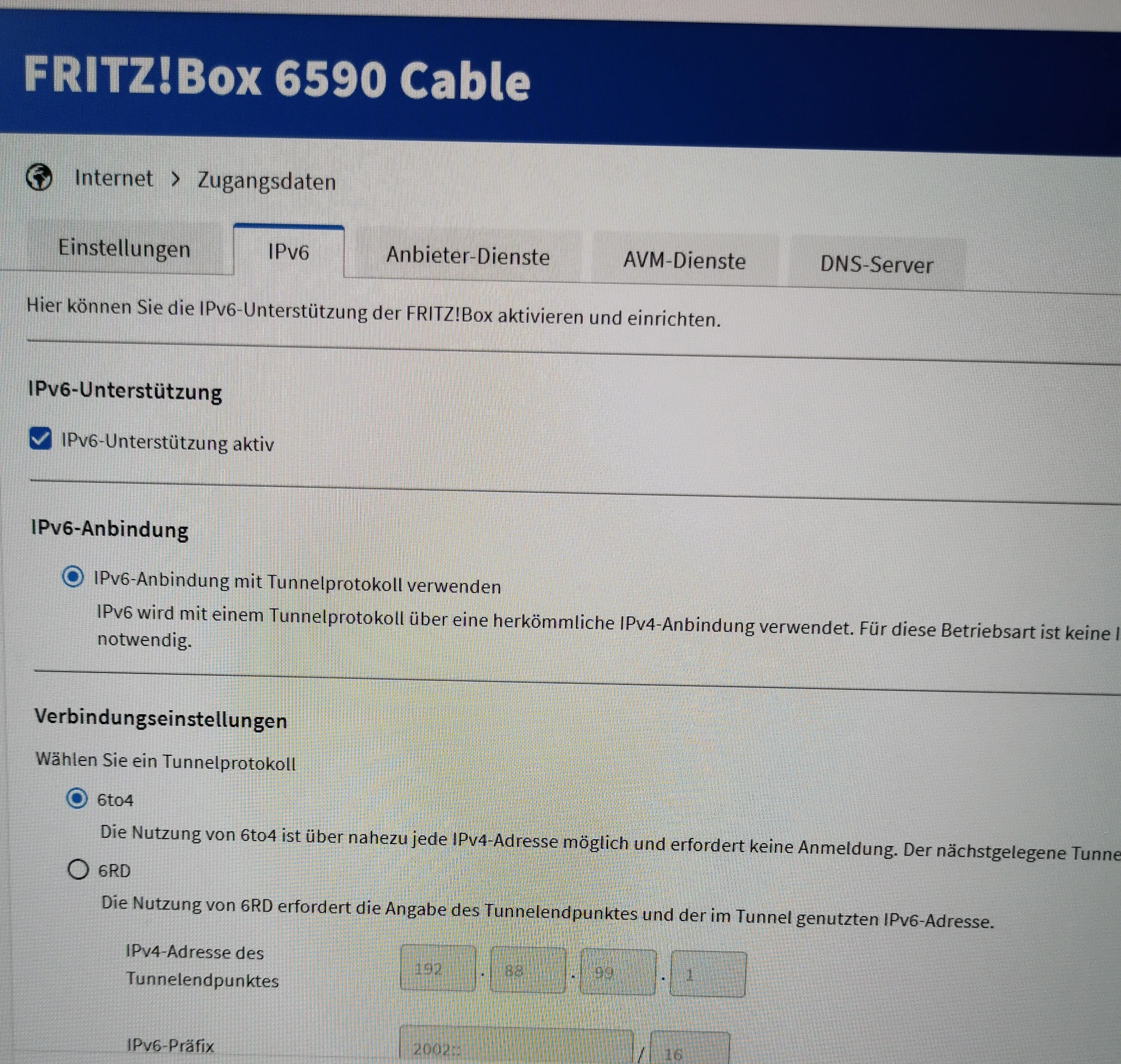 Für die optimale Nutzung von Vodafone (DSL/Kabel) mit einer FRITZ!Box sollten IPv4 und IPv6 (Dual Stack) aktiviert sein.