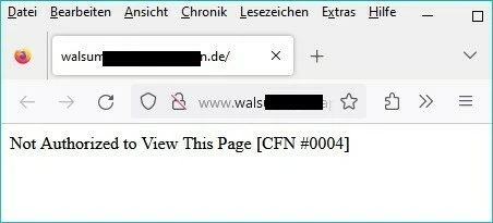 Beim aufrufen unserer Website erscheint folgender Text: Not Authorized to View This Page [CFN #0004].