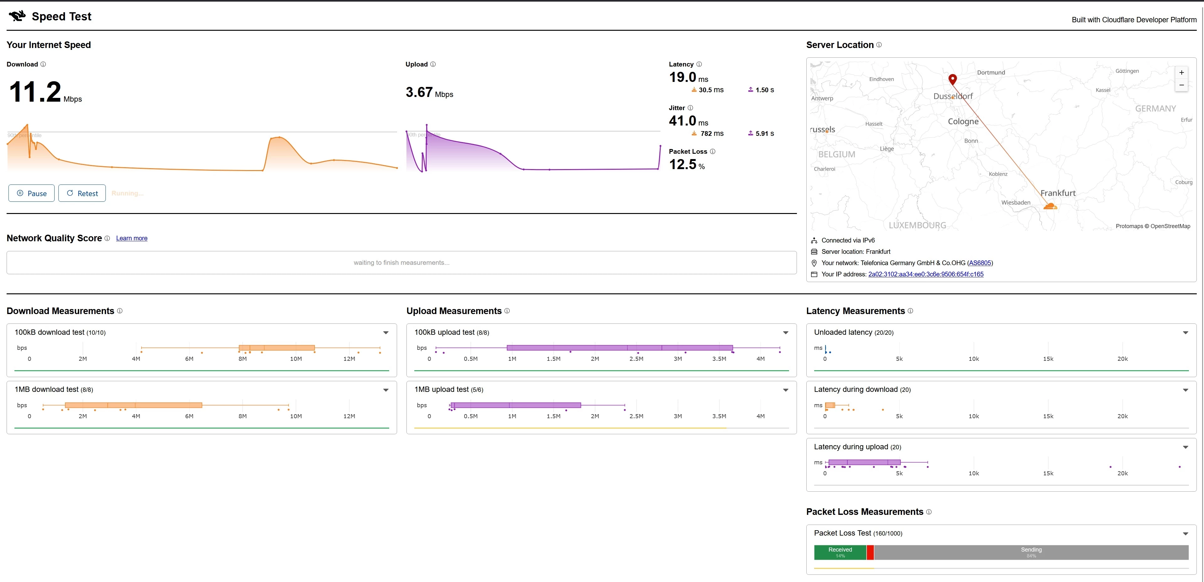 Und wie gesagt: Dass die Testseite nicht verfügbar ist, hinterlässt schon eine gewisse Vorahnung, dass ich am 04.08. ohne Internet dastehe – was ziemlich ärgerlich wäre, da ich relativ oft sehr große Datenpakete für meinen Job herunterladen muss.