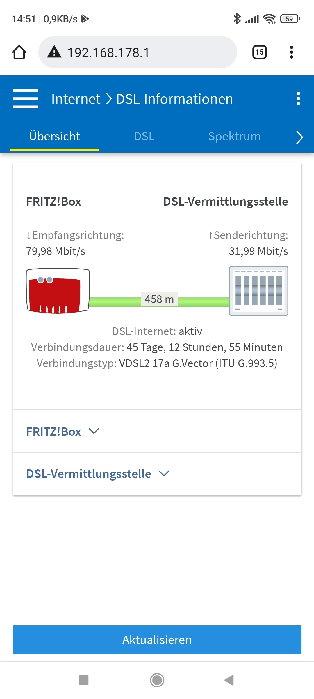 @georgi2075 Bei der Leitungslänge hat die 7490 schon das letzte aus der Leitung rausgeholt. Mit einer Fritzbox 7530AX kommst Du vielleicht 5 bis 10 Mbit mehr Download Sync. Mehr aber nicht. Knapp 100m zu weit weg von der DSLAM für einen 100 Mbit Download Sync.