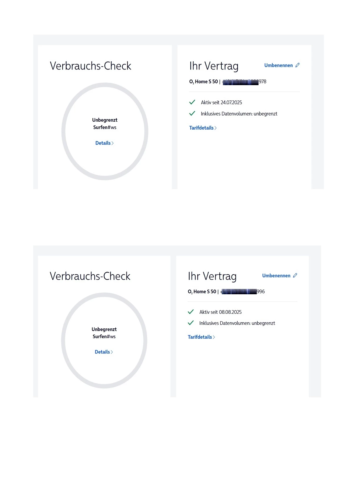Ende Juli habe ich bereits mit dem Servicecenter von O2 telefoniert, wo es hieß, dass es keine Verträge zu der einen Kundennummer gibt. Bei “Mein O2” zeigt es mir jedoch an, dass beide Verträge aktiv und am laufen sind.