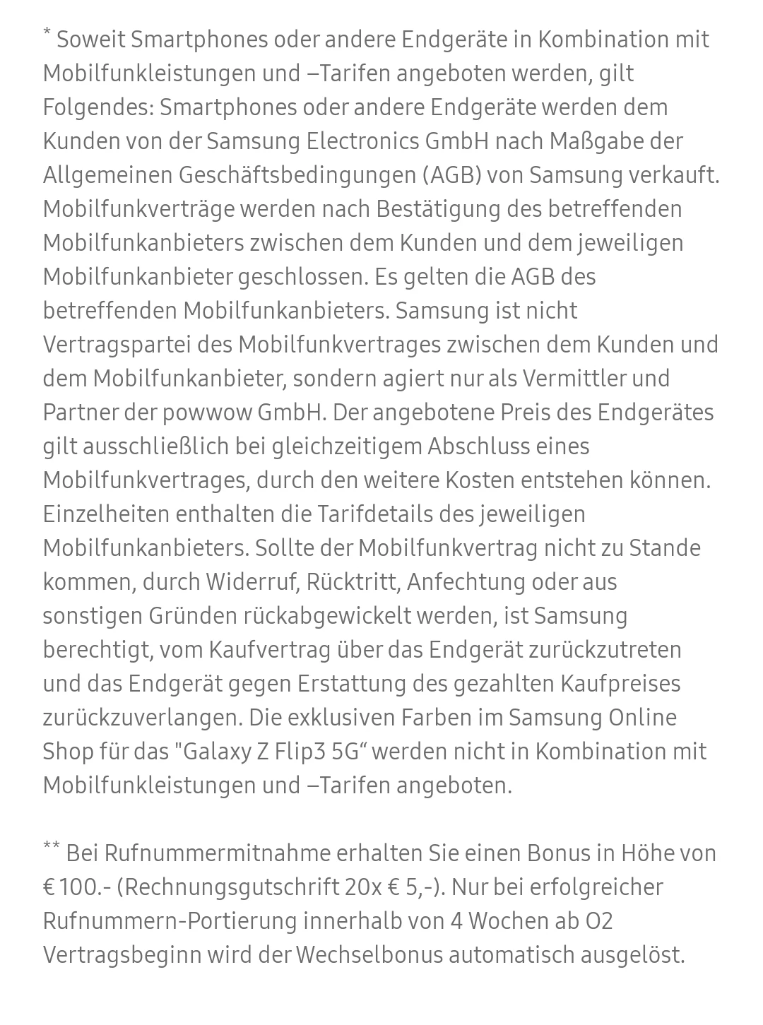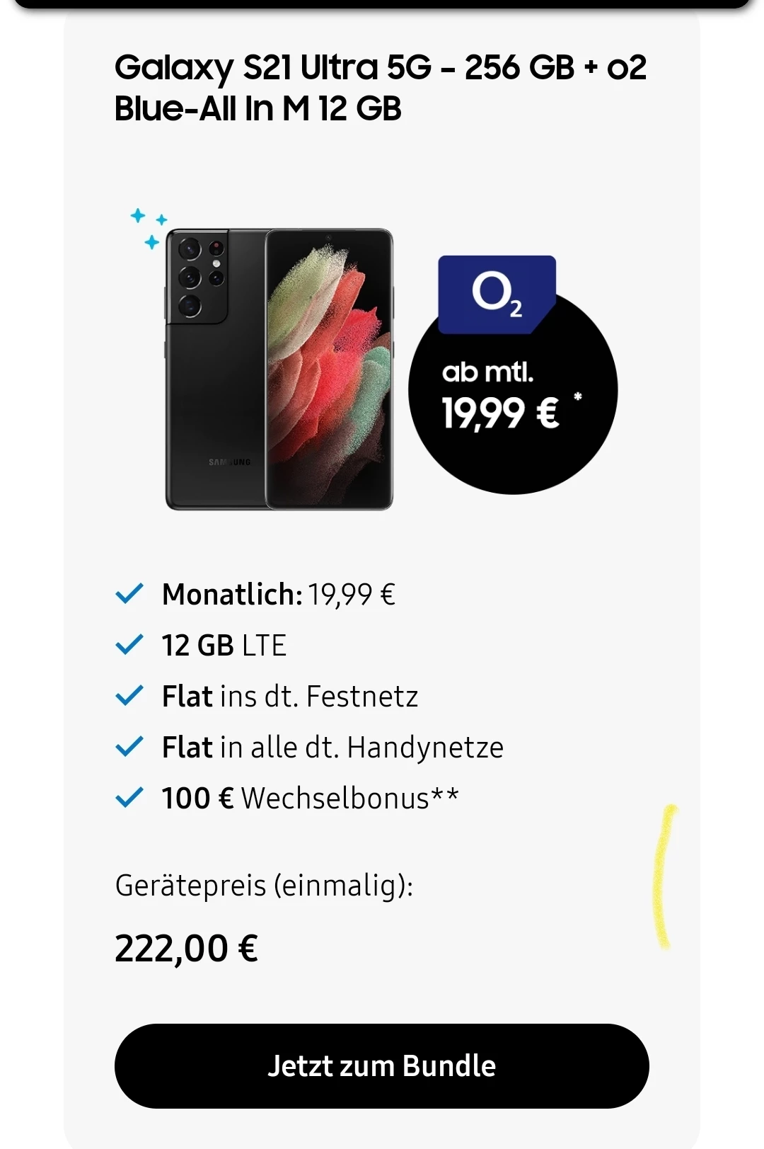 habe mir am 19.11.21 bei Samsung ein Smartphone mit dem Vertrag o2 Blue All-in M gekauft.
