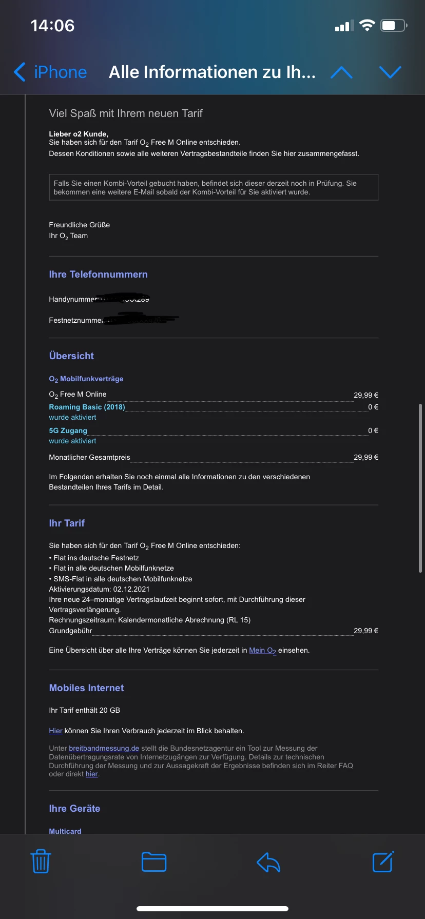 ich hatte bis zum 01.12.2021 einen O2 Free M vertrag 20GB für 19,99€