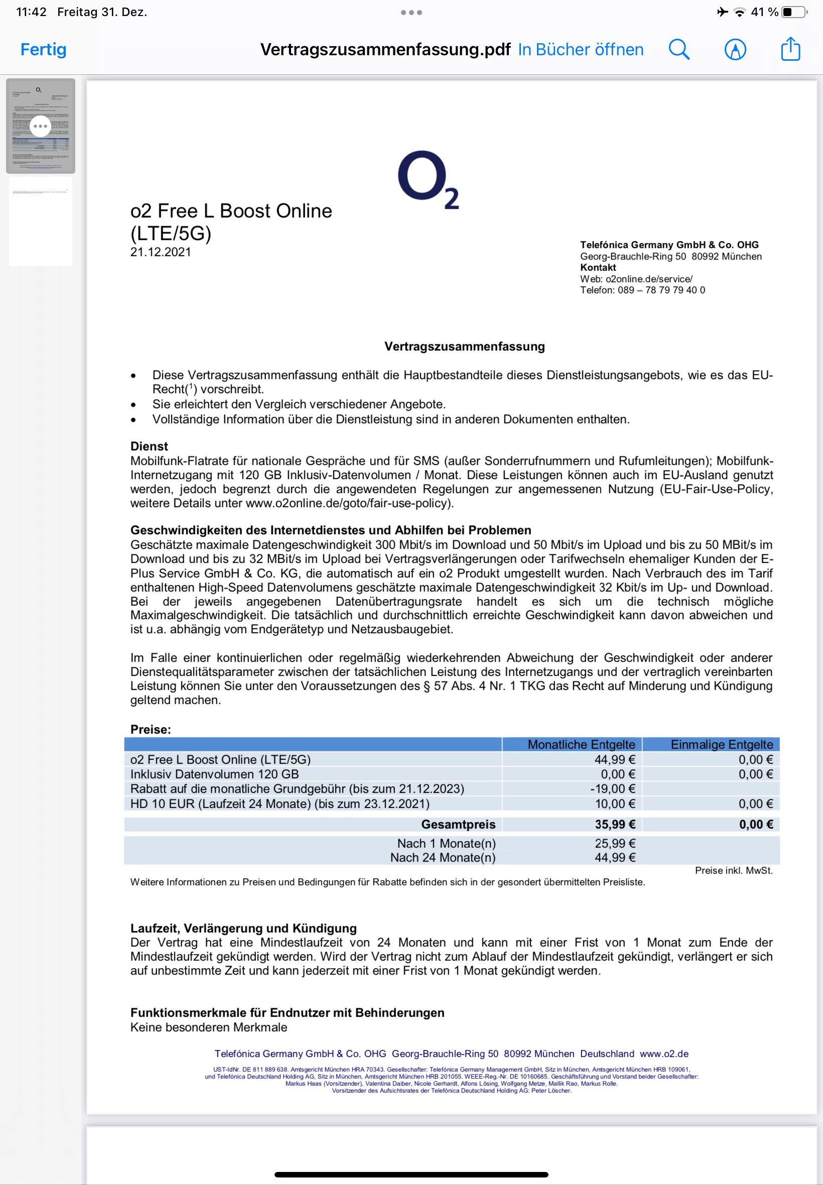 @TomSeifi : Hats du die Vertragszusammenfassung gefunden?