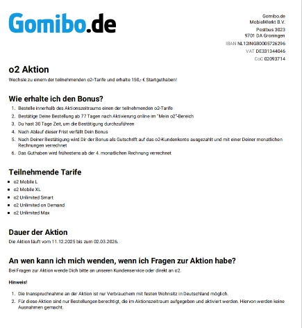 Hallo, vielen Dank! Ja, ich habe über Gomibo  Vertrag für o2 Unlimited on Demand abgeschlossen und ich habe diese Information bekommen.