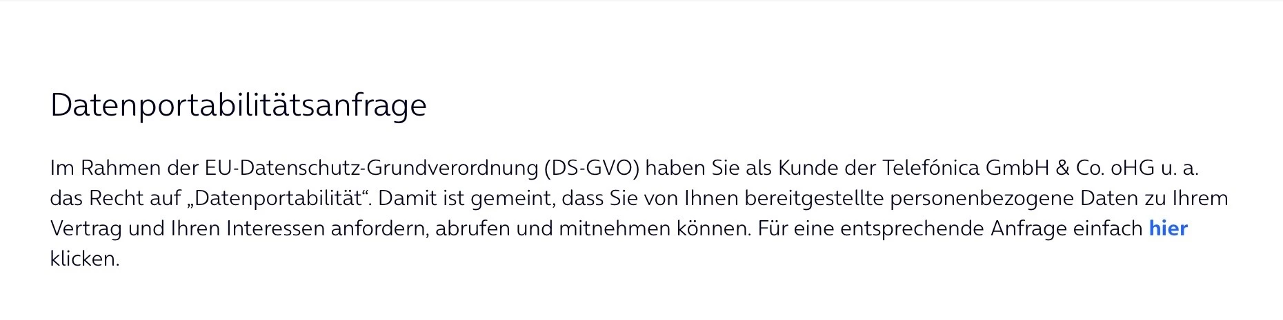 Ich habe von o2 den angeforderten Link zum Download meiner Daten im zuge einer Datenportabilitätsanfrage erhalten aber der Download startet einfach nicht und ich werde dauernd mit angeblichen Wartungsarbeiten vertröstet.