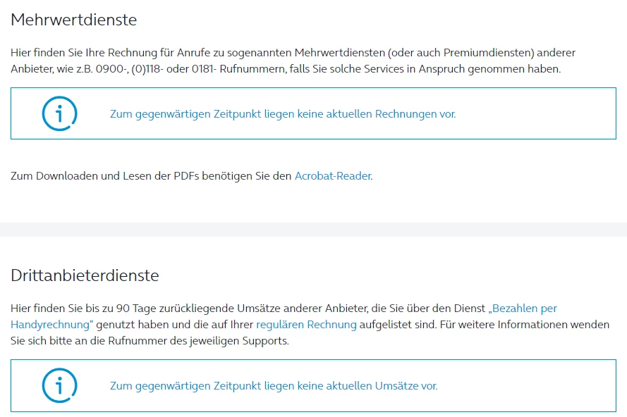 Danke für den Hinweis, aber auch das habe ich nicht getan. Es gibt keine “Mehrwertdienste”, die ich in Anspruch genommen habe, und keine “Drittanbieterdienste”.