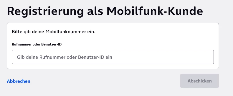 dazu registriere dich hier mit der Rufnummer