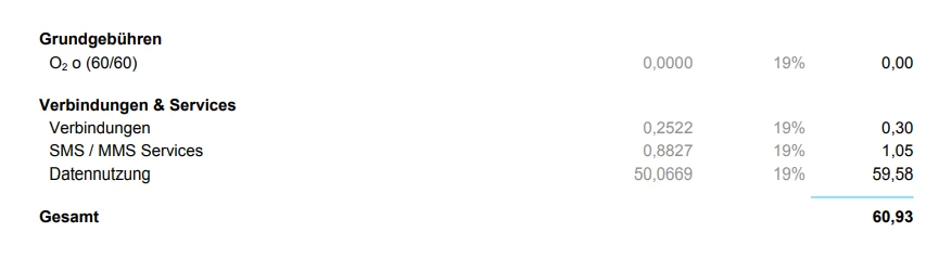 Der Vertrag hat die nachstehenden Eckdaten bgzl. Datenvolumen: