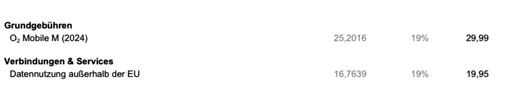 Nun sehe ich auf meiner aktuellen Rechnung, dass mir 19,95 € für Roaming berechnet wurden.