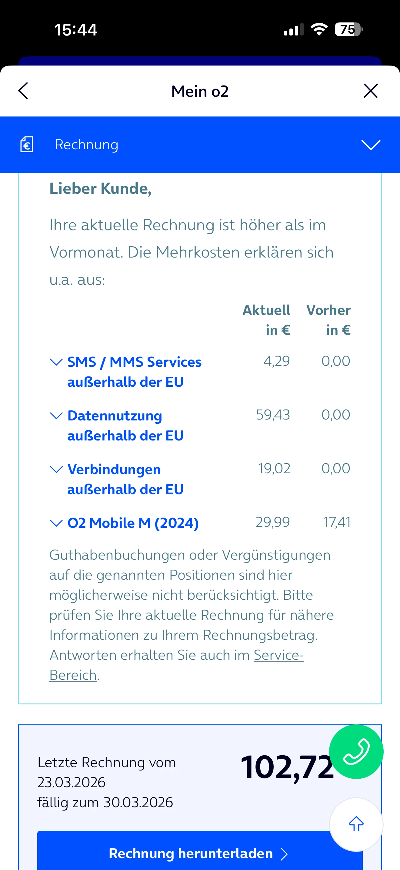 Die Berechnung für die Auslandsnutzung ist korrekt und kann von uns nicht gutgeschrieben werden.