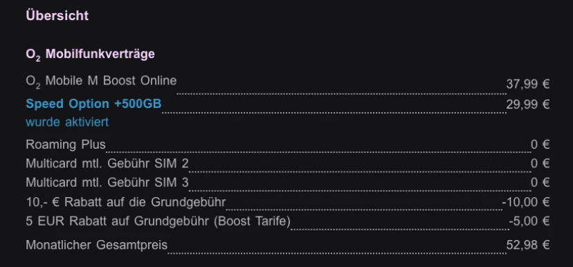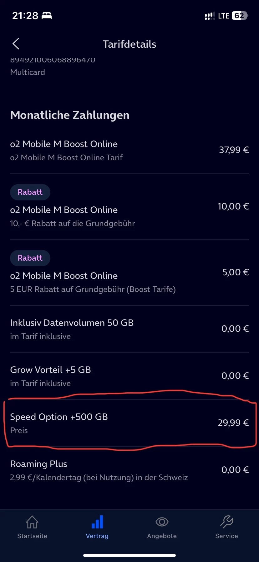 Ich wurde bei Mein O2 App eine Zusatzoption +500 GB für 0€ angeboten.Nachdem ich das Angebot genommen habe, bekomme Ich aber eine Rechnung 29.99€ für das Angebot.