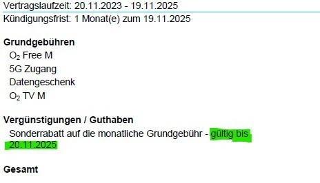 mein Mobilfunkvertrag ging bis 19.11.2025 inkl. Sonderrabatt bis 20.11.2025.