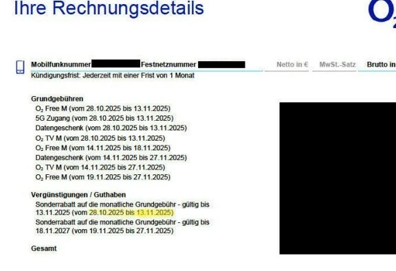 Nun hab ich meine Rechnung erhalten und gesehen, dass der Rabatt (vom Altvertrag) im Monat November nur bis 13.11.2025 vorhanden war (anstatt 19.11.2025).
