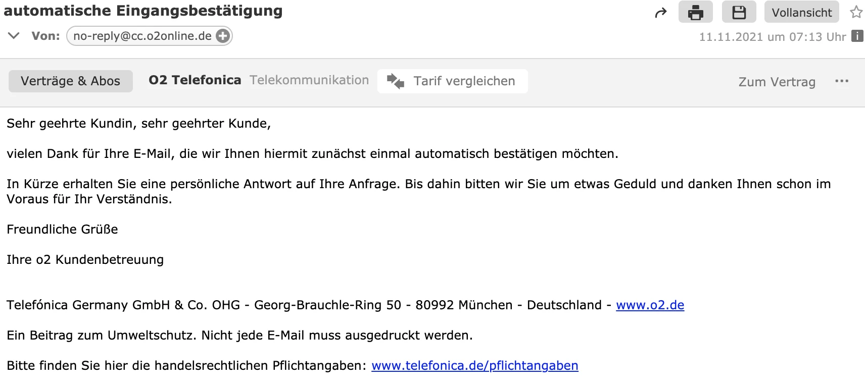 Ich denke, dass jemand von o2 in den kommenden Tagen (rechne mit rund 2 Wochen) sich das ganze einmal anschaut und dir dann den aktuellen Status mitteilt.