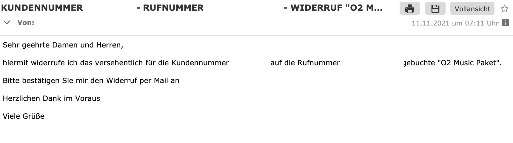 ich hatte versehentlich vor zwei Monaten ein "O2 Music Paket" abonniert, allerdings sofort per Mail gekündigt. Daraufhin erhielt ich die allgemeine Eingangsbestätigung und warte seither auf eine Reaktion 🙂 Wie ich heute auf der aktuellen Rechnung ersehen konnte wurde der Betrag nochmals abgebucht. Könnt ihr die Kündigung dieses Mehrwertdienstes bitte auslösen?? Herzlichen Dank im Voraus.