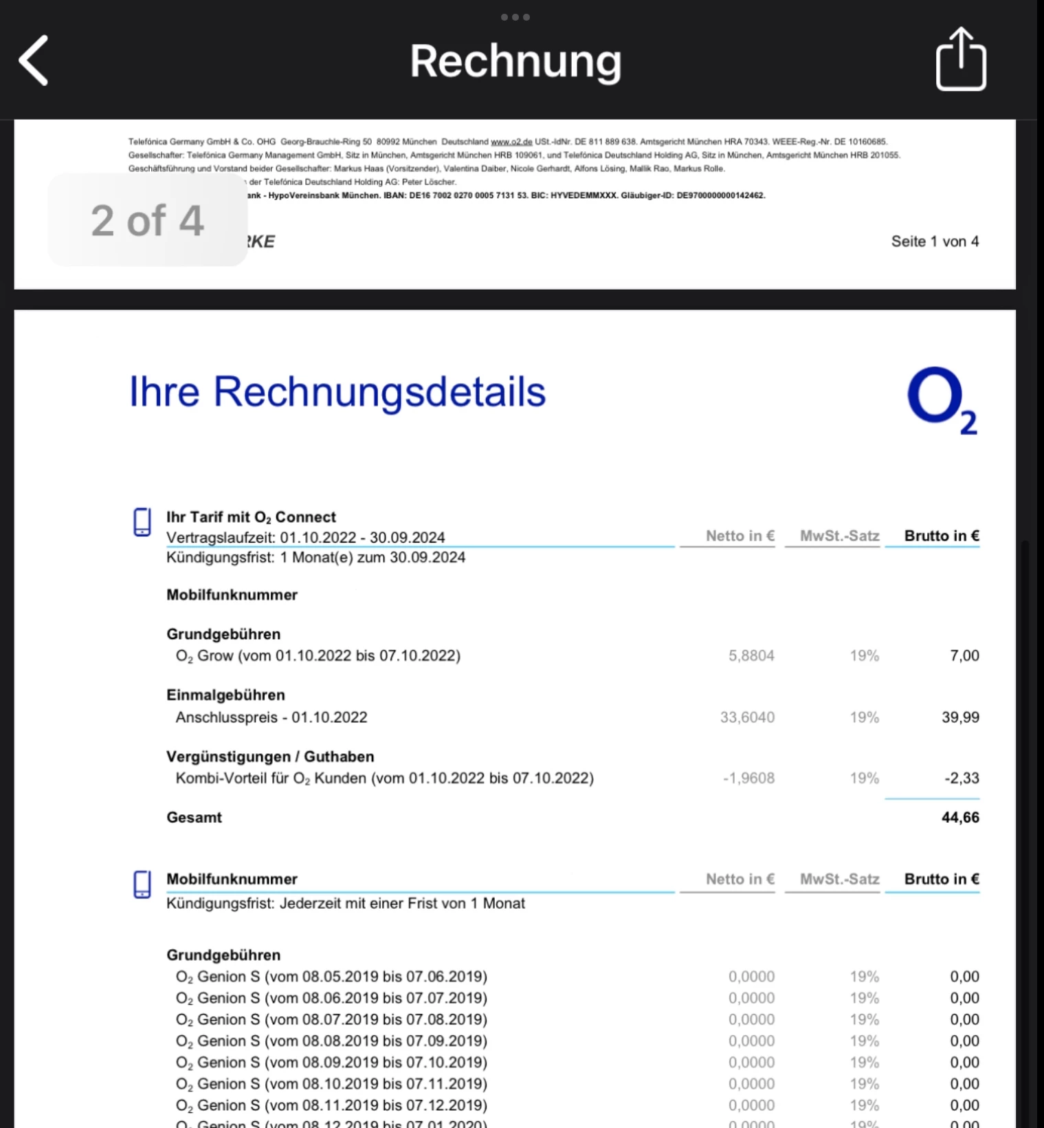 Schon mal super, dass dein Vertrag in Mein o2 so gelistet ist, wie es auch vertraglich vereinbart war.