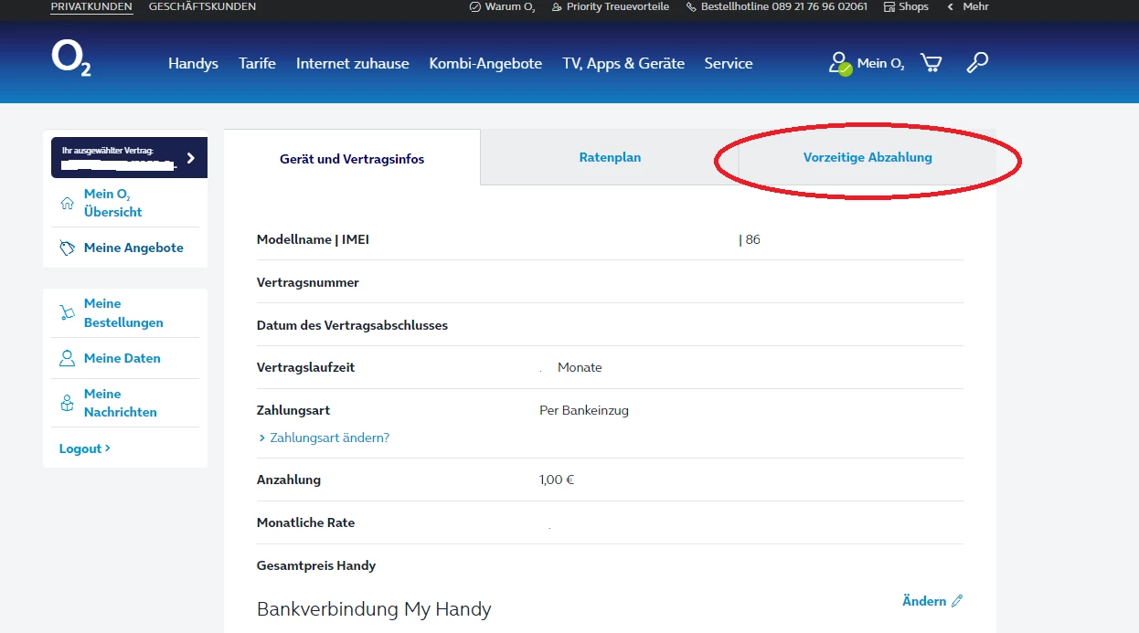 Hallo ich habe damals die Apple Watch über meinen O2 Vertrag mit der My Handy Ratenoption gekauft. Jetzt wollte ich fragen wo ich diese finde um sie vorzeitig zu bezahlen?