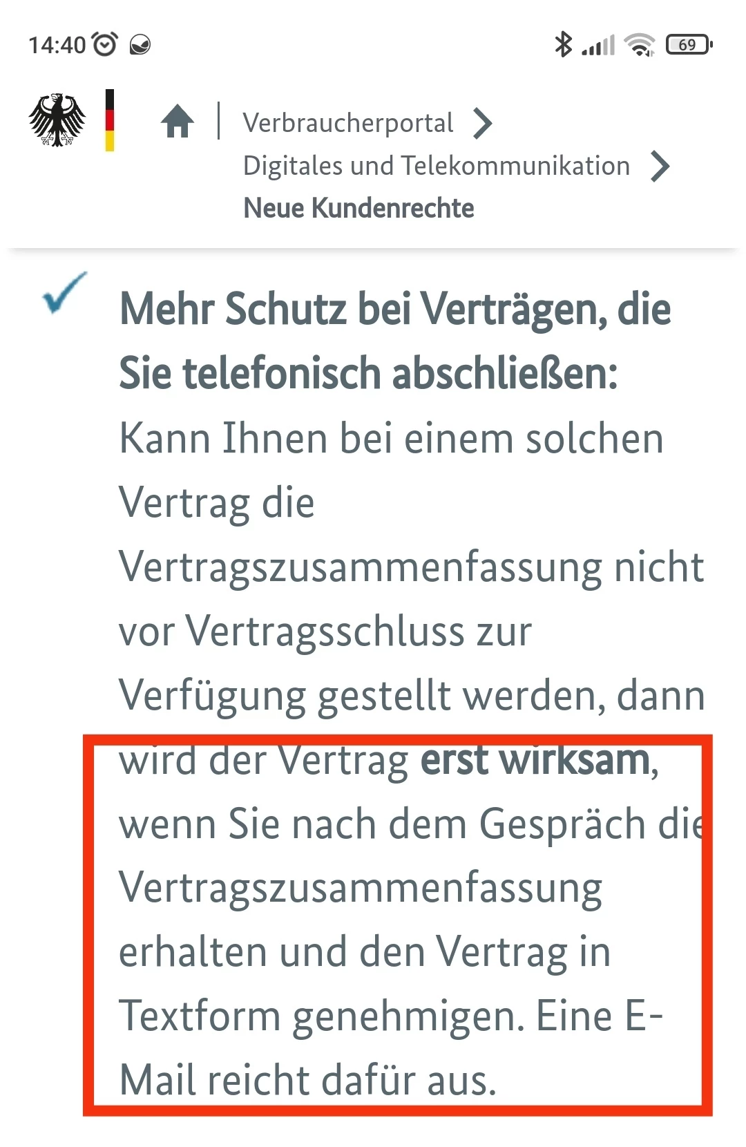der telefonische Vertrag ist nur gültig, wenn er von dir in Textform bestätigt wurde.