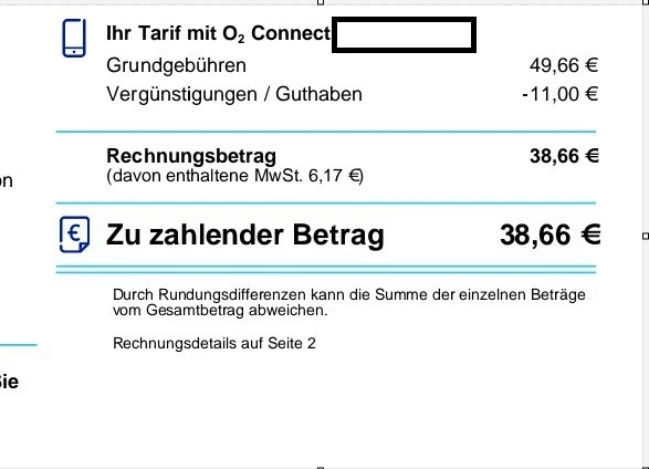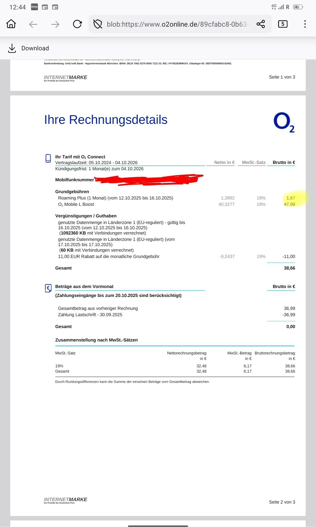 auf der ersten Seite sieht man leider nur die Gesamtsumme aller Positionen. Damit wir genau nachvollziehen können, woher die zusätzlichen Kosten stammen, bräuchten wir bitte noch die zweite Rechnungsseite, direkt dort, wo unter deiner Rufnummer die einzelnen Posten aufgeschlüsselt sind.