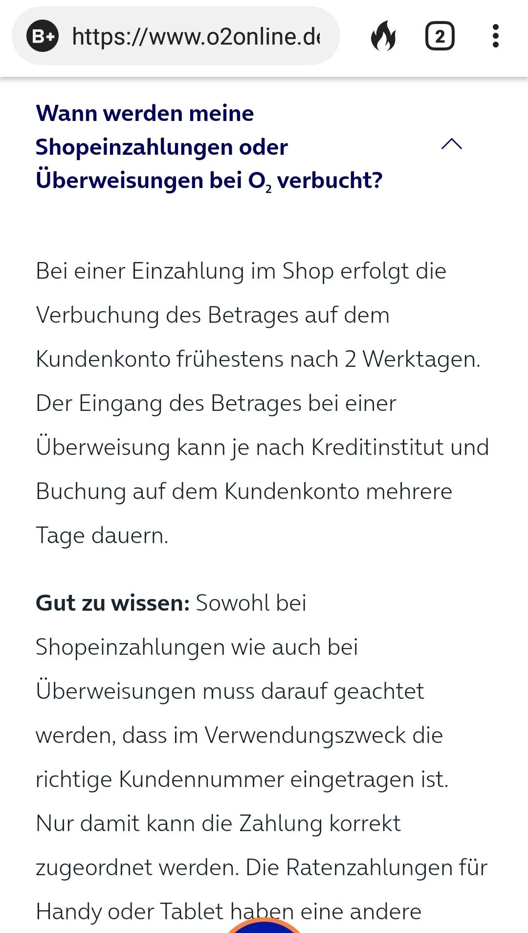 https://www.o2online.de/service/rechnung-zahlung/ "frühestens nach 2 Werktagen"