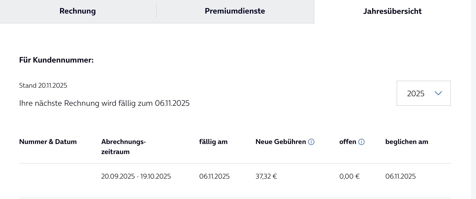 Ihre aktuelle Rechnung wird fällig zum 30.10.2025