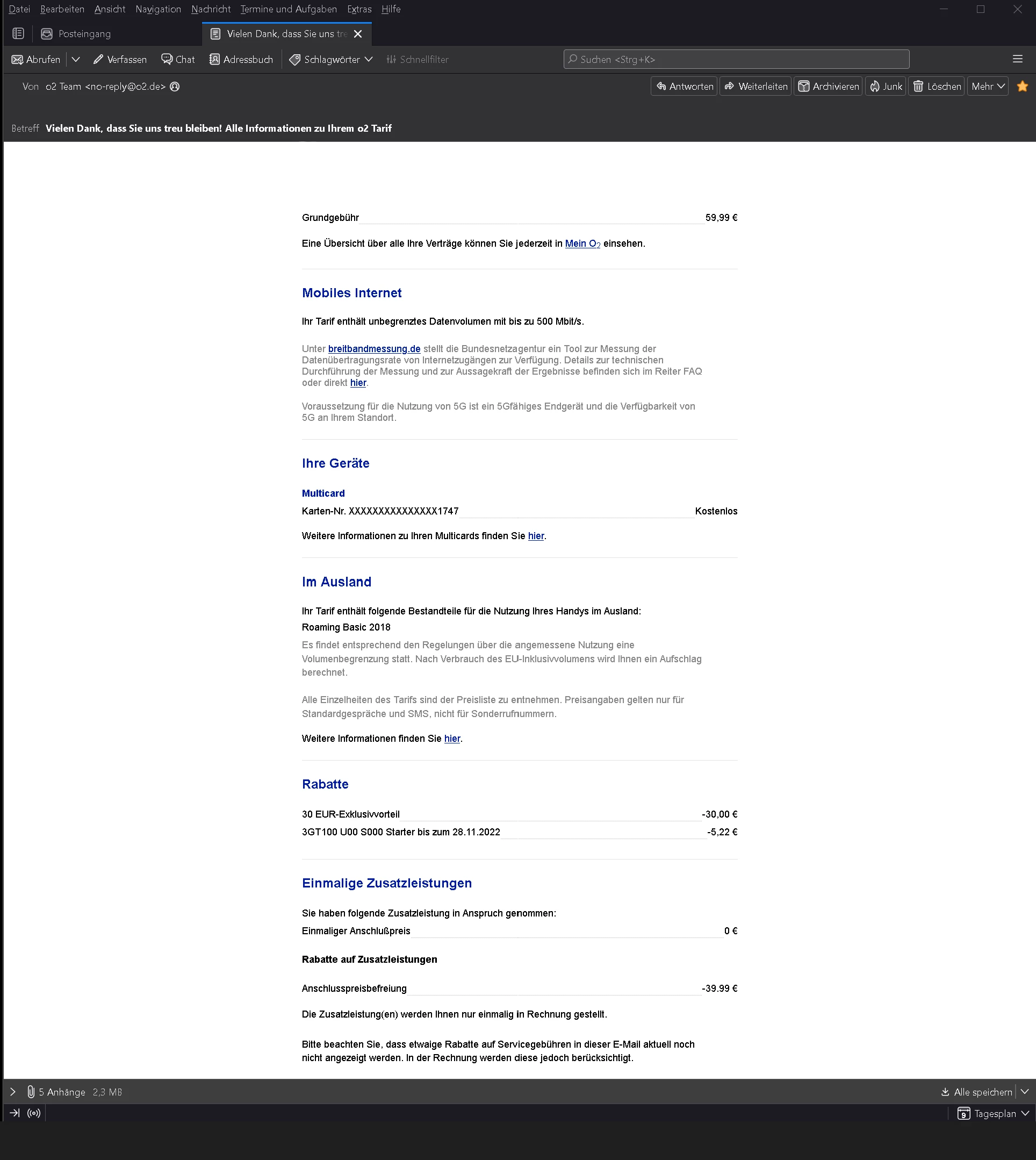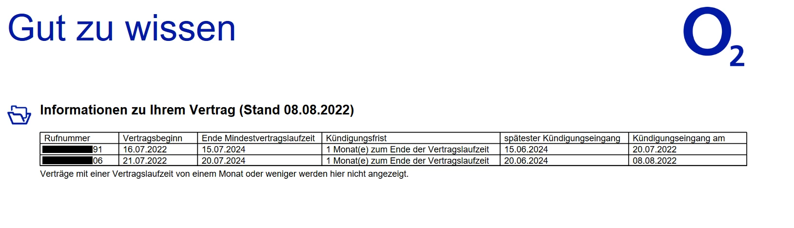 Laut Bestättigung vom 29.08.2022, 12:00:26 Betreff: "Vielen Dank, dass Sie uns treu bleiben! Alle Informationen zu Ihrem o2 Tarif"