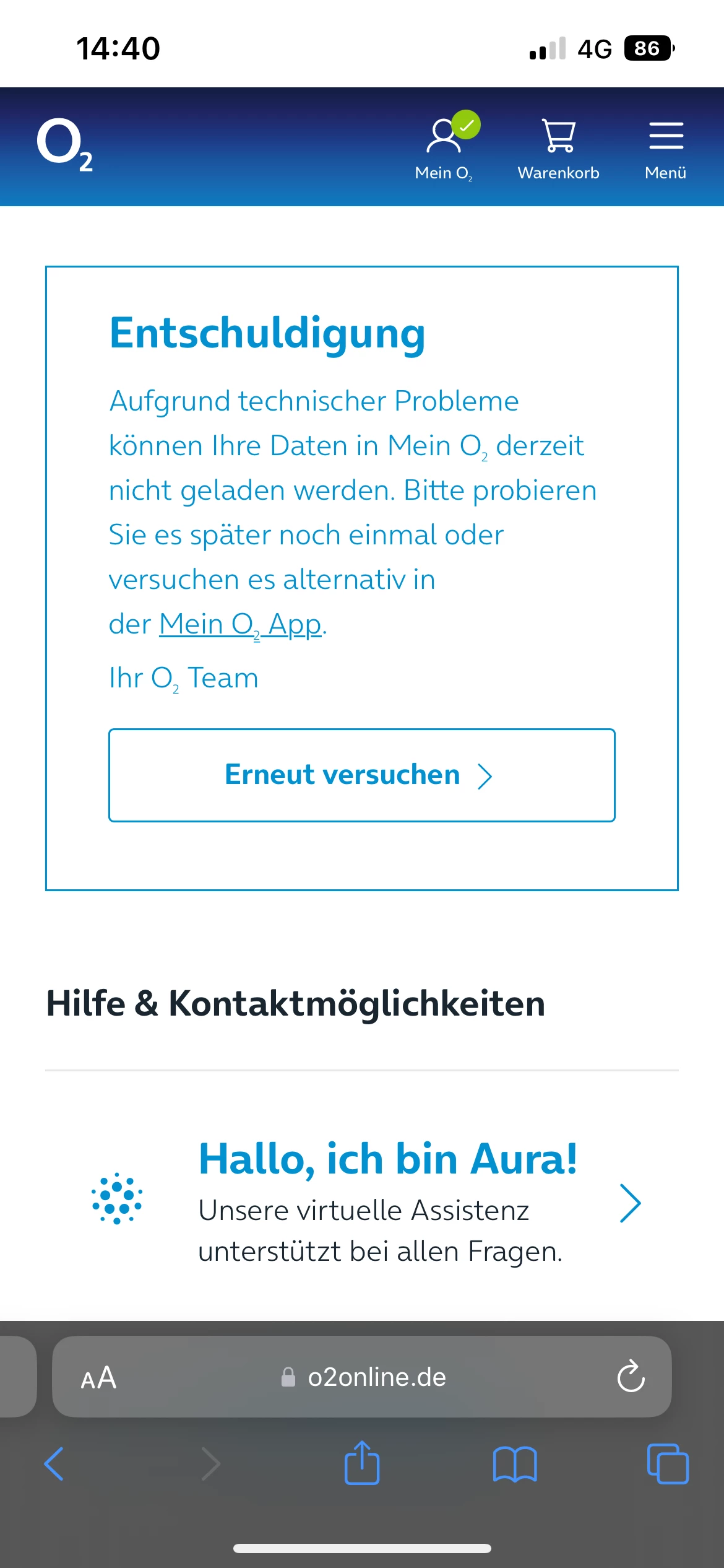 Keine Anmeldung bei MeinO2 möglich.