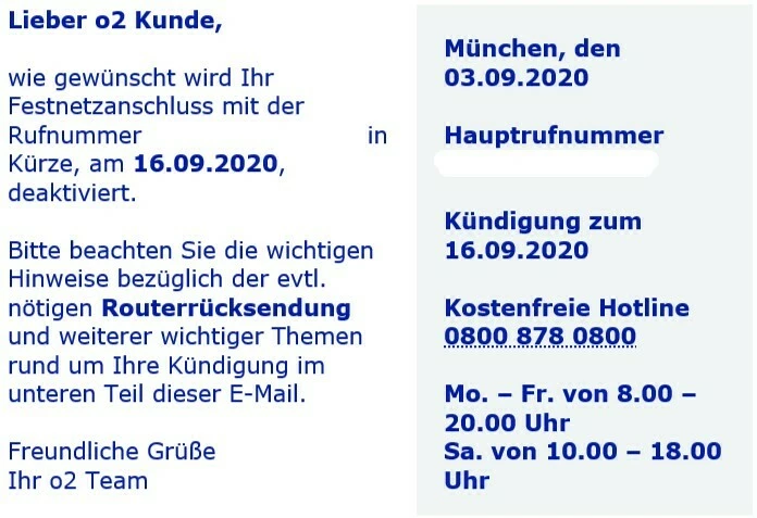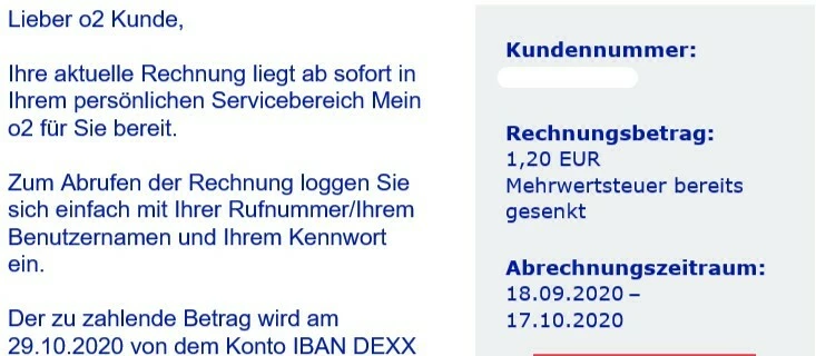 ich hatte im Jahr 2018 einen o2-Vertrag abgeschlossen, diesen dann ganz normal nach zwei Jahren gekündigt und den Router rechtzeitig zurückgeschickt. Die Deaktivierung erfolgte dann ganz normal am 16.09.2020. Einen Monat später (22.10.2020) habe ich eine weitere Rechnung von o2 bekommen, mit 1,20 €.
