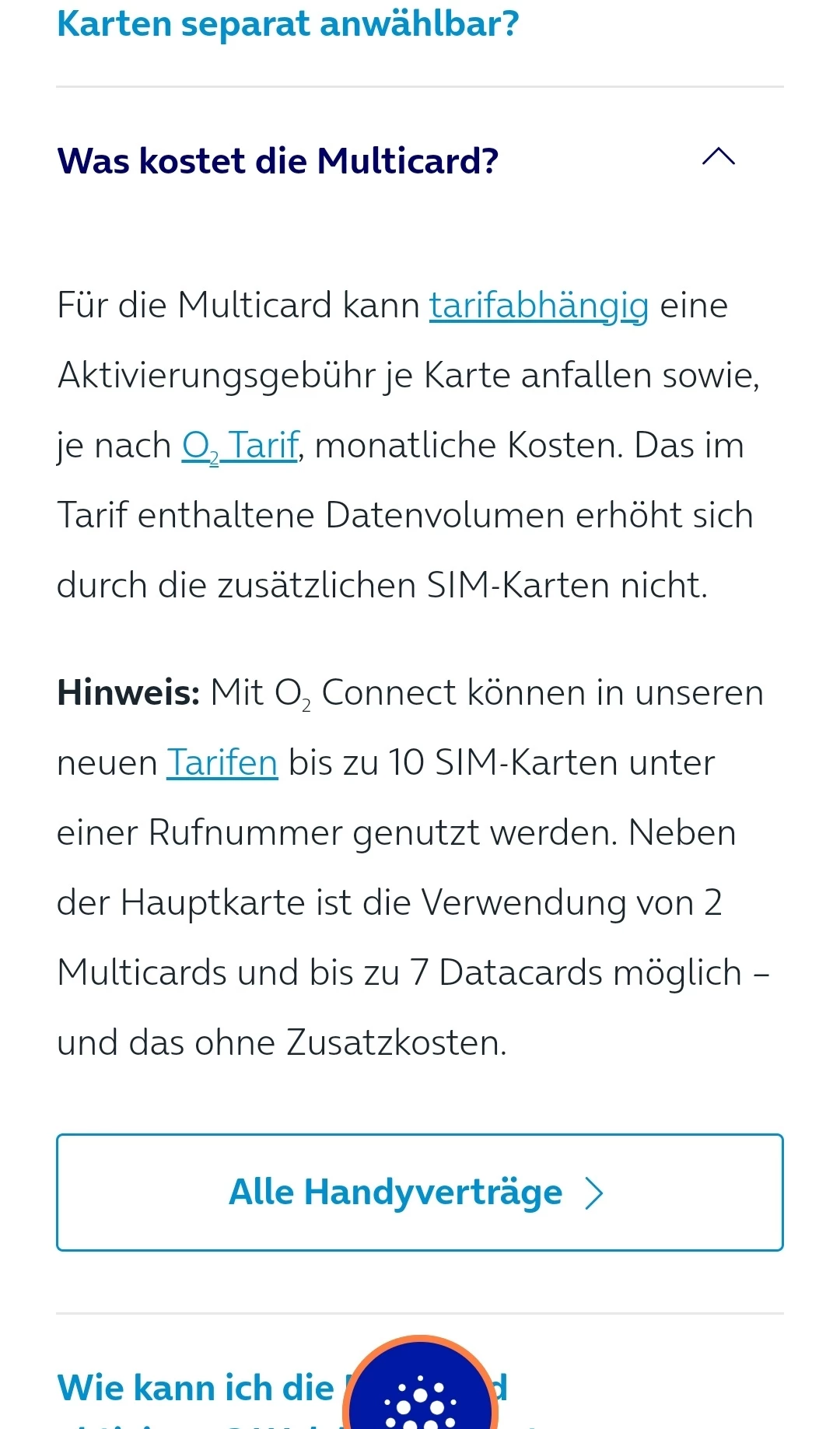 Kosten der Multicard bei O2 free M