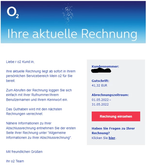 Bitte schicke mir per privater Nachricht an @o2_Support die Kundennummer aus der Mail und deinen Namen, Vornamen und Geburtsdatum.