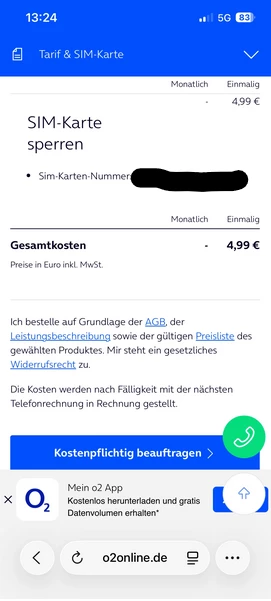 Es wird mir ausschließlich „SIM-Karte sperren (4,99 €)“ angezeigt,
