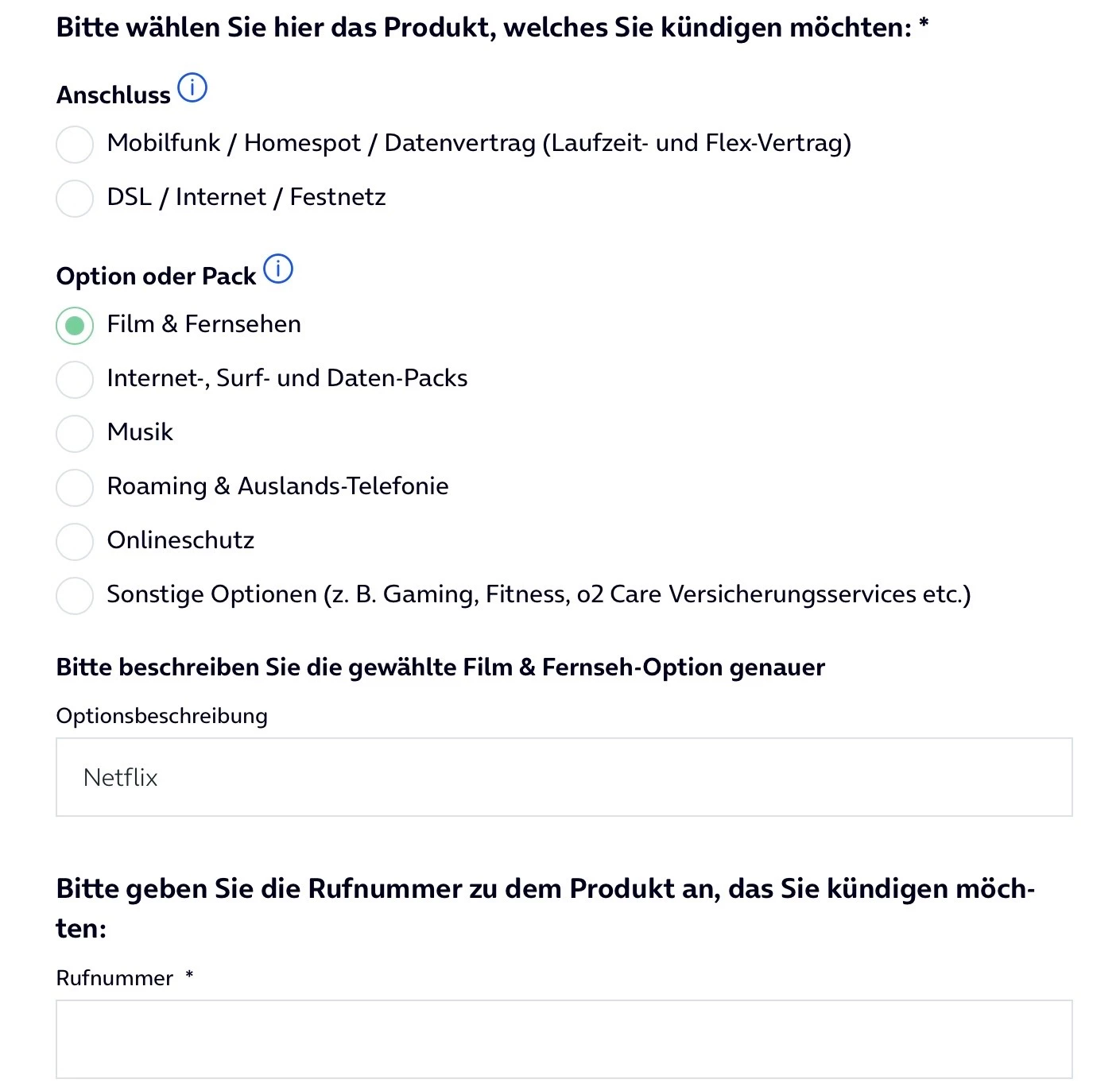 Hallo. Tragödie, wo versteckt o2 den Link zur Netflixkündigung.