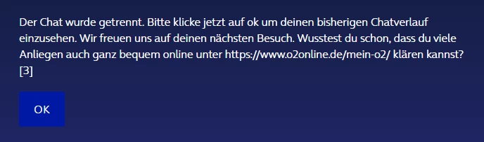 Ich habe jetzt 2x versucht im O2 Service-Chat diesen Fall zu schildern, 2x wurde ich einfach rausgeworfen: