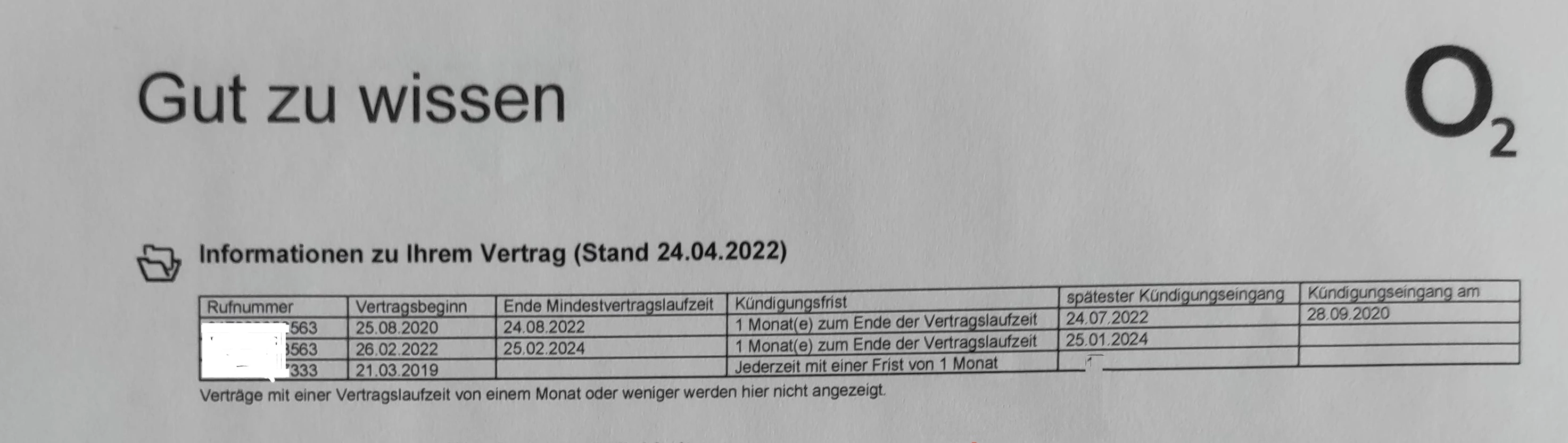 In der Aprilrechnung 2022 erscheint erstmalig ein zusätzlicher Vertrag aus 2019 mit unbekannter Telefonnummer und unbekannter Vertragsnummer.