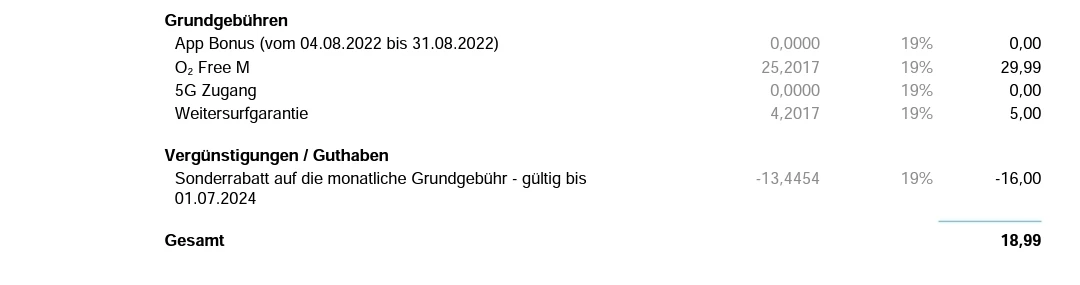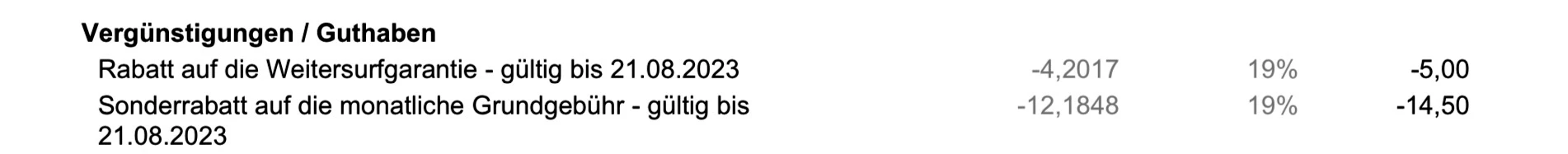 also fehlt der Rabatt auf die Weitersurfgarantie? Und dieser ist auf der Vertragszusammenfassung aufgeführt? Hier ein Beispiel: